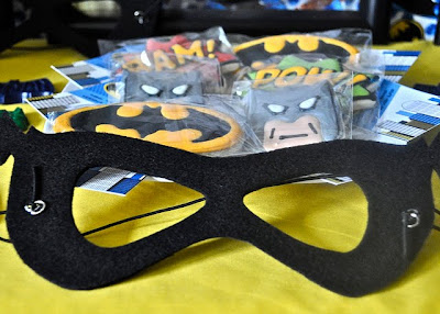Joker Juice was at each child's place setting, along with super hero masks! (Our fav source, Kid Kapers!)